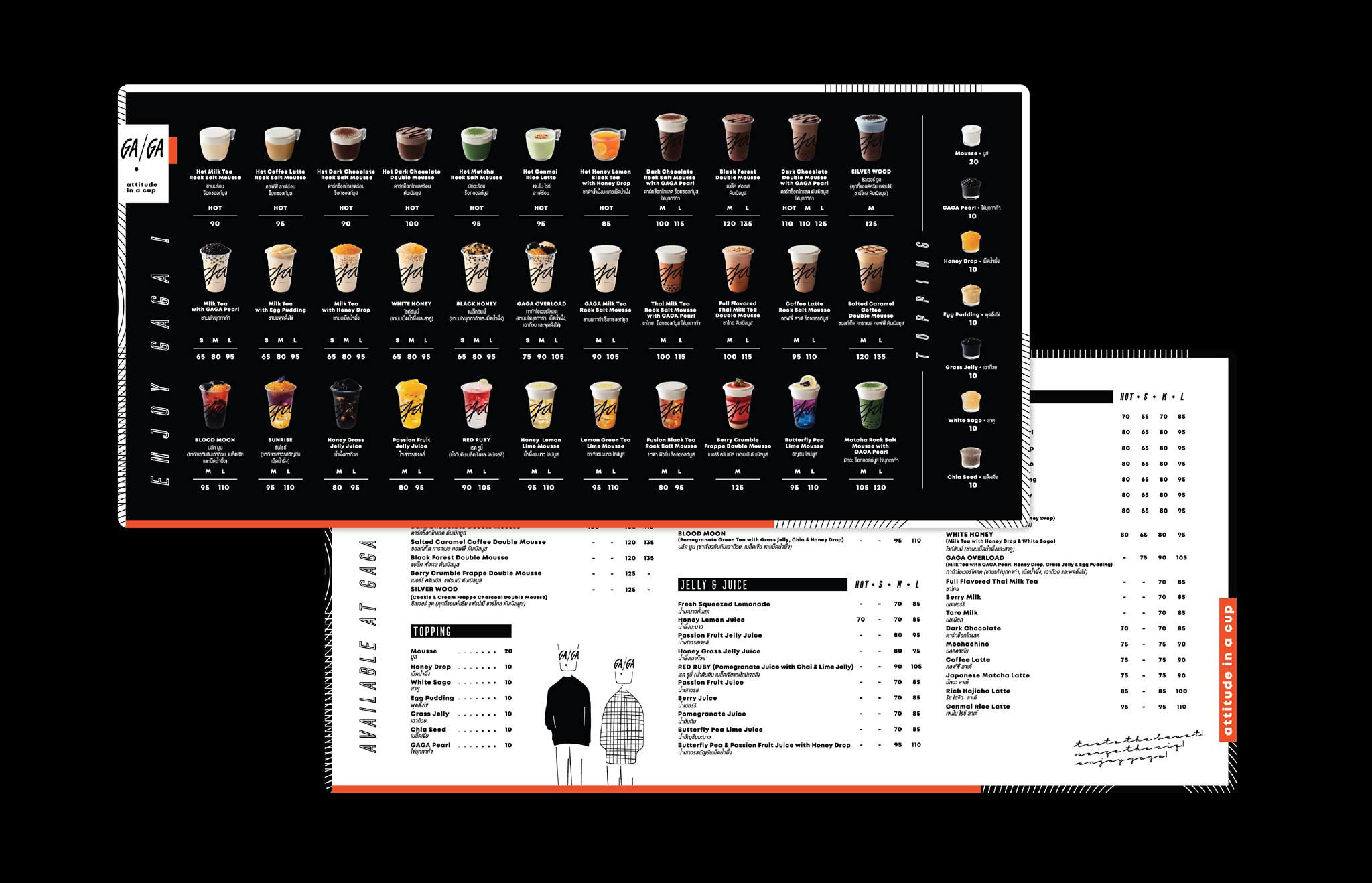 ร้านชานมในชื่อแบรนด์ชิคๆ อย่าง GAGA ที่มีคำต่อท้ายว่า Attitude in a cup ไปสุดทางด้านความสร้างสรรค์จริงๆ ถ้าใครเป็นแฟนชานมร้านนี้จะรู้ว่าไม่ได้มีแค่เมนูชานมไข่มุก แต่มีหลากหลายเมนูท็อปปิ้งและเครื่องดื่มแสนอร่อยที่ร้านอื่นไม่มี มีลายแก้วและฝาถึง 6 ลาย ซึ่งมาจากความคันของดีไซเนอร์ ที่ทำ mixture of style ออกมาอย่างเมามัน ผสมกับความมันส์ของลูกค้า ที่เสนออะไรไปก็เอาหมด ทำให้งานออกมาสุดจริงๆ ต้องขอขอบคุณลูกค้า GAGA มา ณ ที่นี้ด้วยค่ะ